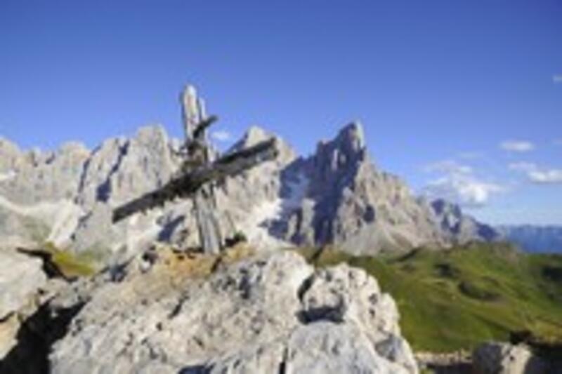 la cima del Castellaz ( quota 2333 ) seguendo in parte il sentiero del “Cristo Pensante” ( Visita a gallerie e postazioni di osservazione per artiglieria Italiana ) Rientro a Passo Rolle attraverso mulattiere e pascoli.